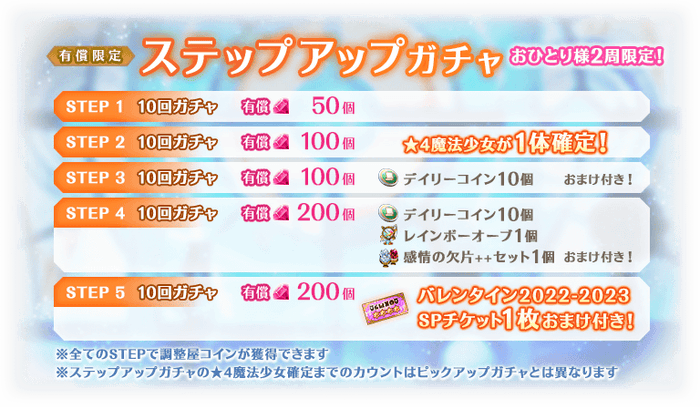 有償限定 ステップアップガチャ バレンタイン魔法少女2022-2023編