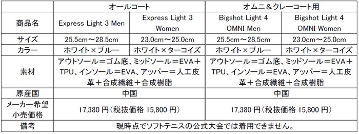 ■テニスシューズ「Express Light 3」「Bigshot Light 4 OMINI」の概要