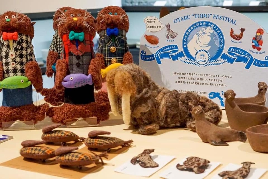 小樽水族館の人気者「トド」を人気クリエイターの方々に個性豊かに楽しく表現していただきました!箸置きや器、ブローチ、ぬいぐるみ等等。海獣海馬(トド)の変様を是非お楽しみください。当店にお越しの際は、ぜひお隣の小樽市総合博物館(運河館)にあるトドの骨格標本も併せてご覧ください。
