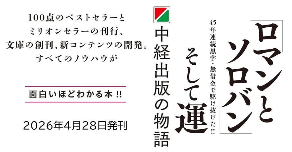 【“100点のベストセラー” 数人で始めた会社がなぜ業界のトレンドセッターに】『ロマンとソロバンそして運ー中経出版の物語』2026年4月28日(火)刊行