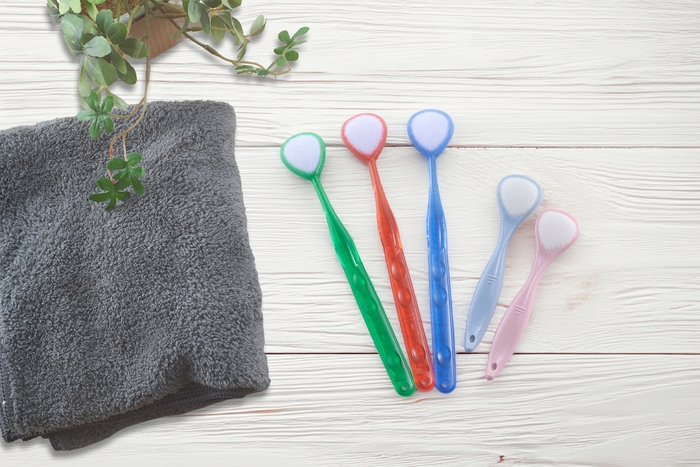 また舌ブラシを使った舌磨きのコツは、あまり力まずに、優しく磨くことです。舌はデリケートな部位なので、強くこするのは避けたいです。舌ブラシを舌の奥に当て、優しく手前に引くようにして舌苔を除去します。この動きを1~2分繰り返しましょう。
