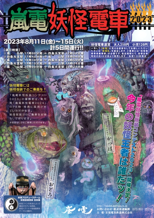 「嵐電妖怪電車」の運行ダイヤや関連イベントの内容が決定しましたのでお知らせします。