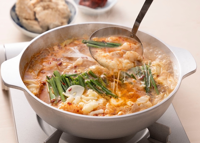 「極旨(こくうま)もつ鍋」は、こく味噌ベースのスープに、福岡県の老舗蔵元「喜多屋」の純米吟醸酒で作られた酒粕を使用しており、柔らかく贅沢な風味が特徴です。通常の酒粕よりも芳醇で味わい深いコクが味噌と調和し、もつの旨味を最大限に引き立てます。寒くなるこれからの季節に体が温まる冬にピッタリのもつ鍋です。