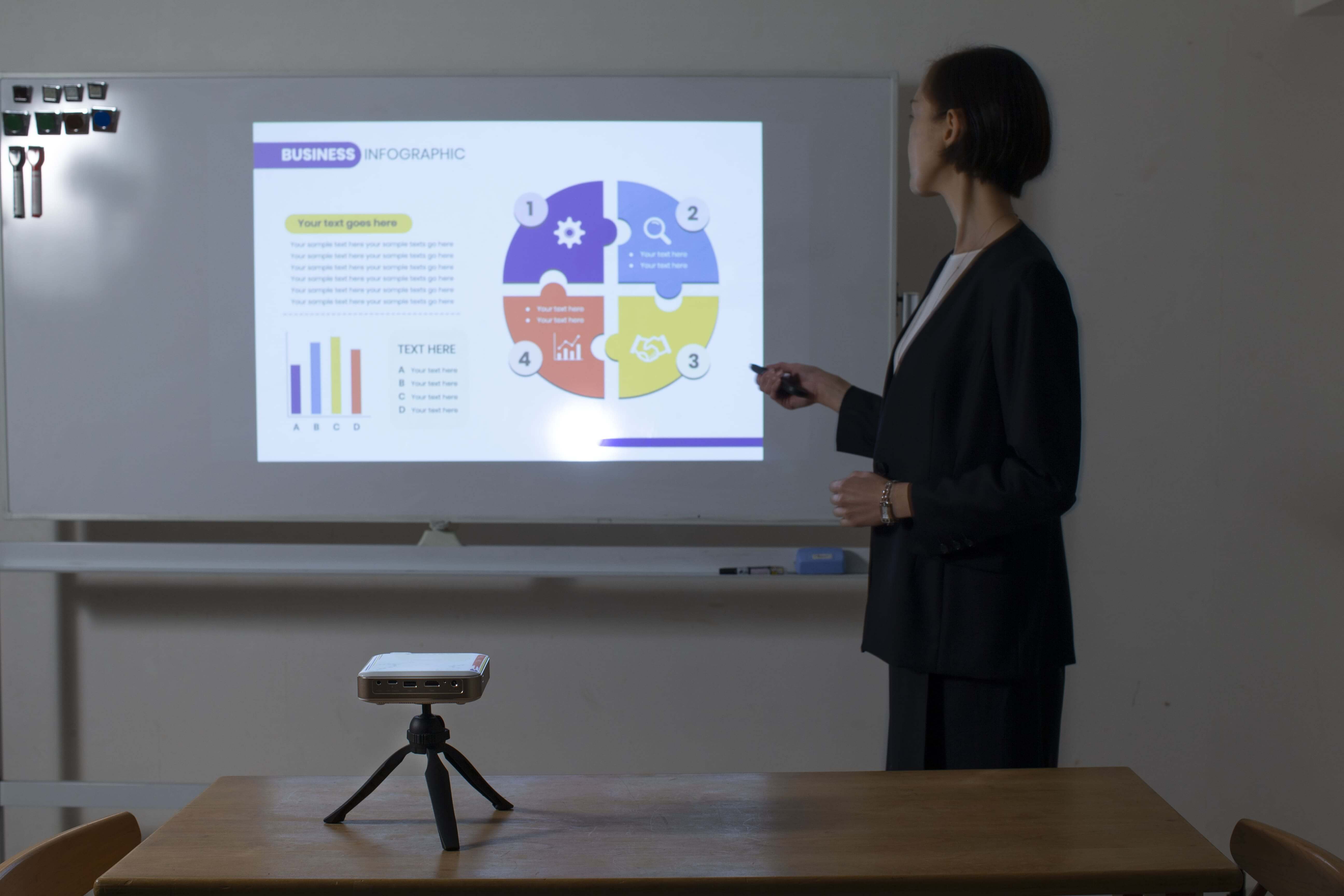 手のひらサイズ、アプリ内蔵、コードレス、三拍子揃ったモバイルプロジェクターです。