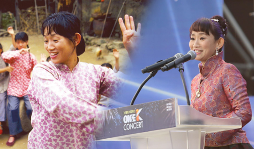 2019年3月1日、日本人の母、中国人の父を持つ「愛花」は、韓国国会広場で1万人の観衆の前に立っていた。