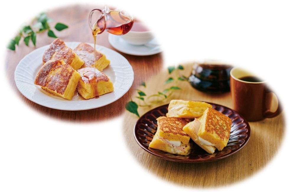 人気のフレンチトーストに、温めておいしい“惣菜系フレンチトースト”が仲間入り!電子レンジ対応で、温めるとホットサンドのような味わいをお楽しみいただけます。