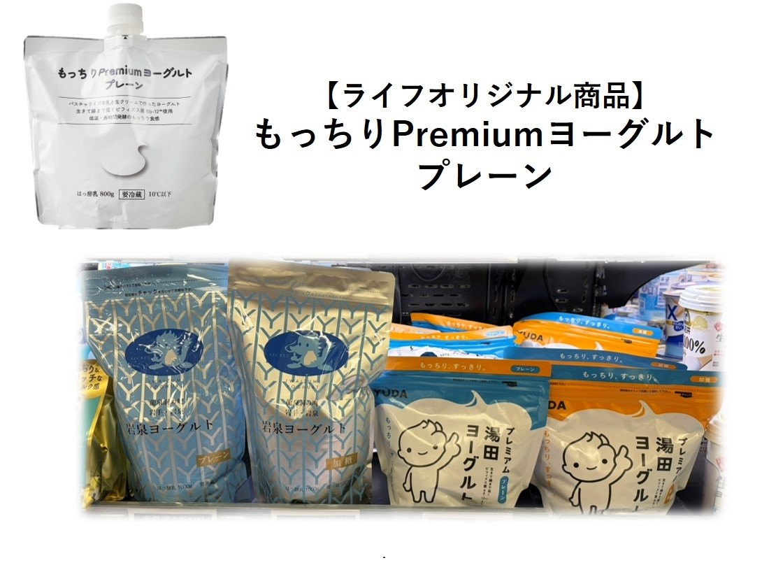 人気が高まっているヨーグルトコーナーでは、週末のまとめ買い需要に対応し、ライフオリジナル商品をはじめとしたパウチタイプの商品を豊富に取りそろえいたします。