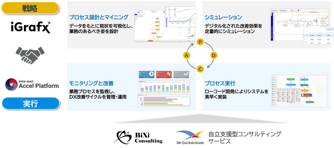 iGrafxは、プロセスマイニング、モデリング、シミュレーションで16カ国・数千社に導入されるプロセスインテリジェンス市場のグローバルリーダーです。一方、イントラマート社は25年にわたり、エンタープライズ・ローコードプラットフォーム※1「intra-mart(R)」を主軸に、日本企業の業務プロセスを支える基盤として、ワークフロー/ローコード領域をリードしてきました。両社は日本市場で長年の協業関係を築いており、このAI × プロセス × データ時代に求められる新しい業務デザインと自律改善サイクルを実現するため、Autonomous Operations領域での共同開発に合意しました。