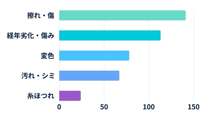 バッグの角や表面に生じる擦れや小さな傷といったトラブルが最も多く寄せられました。目立ちにくいダメージでも、全体の高級感を損なう大きな要因となります。