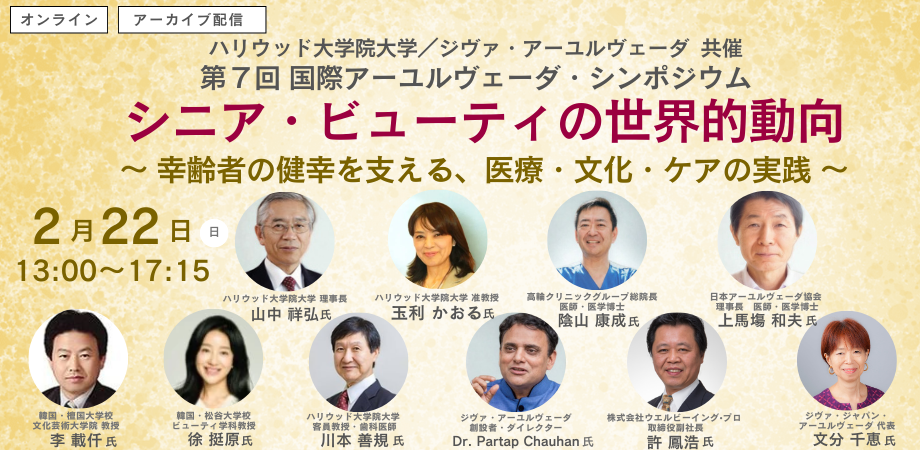 ハリウッド大学院大学とジヴァ・アーユルヴェーダは、2026年2月22日(日)に第7回国際アーユルヴェーダ・シンポジウム「シニア・ビューティの世界的動向」を開催いたします。