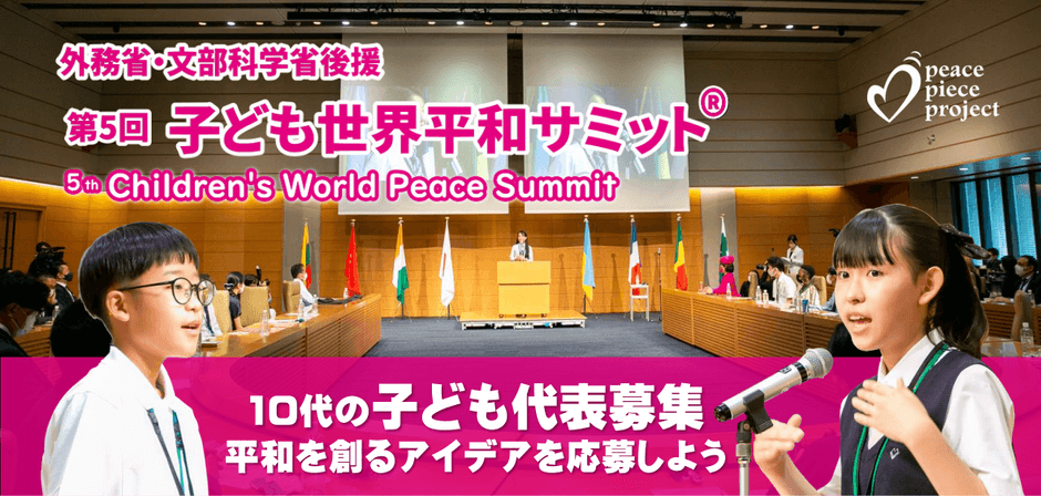 世界平和を実現するための活動を行っている一般社団法人ピースピースプロジェクト(代表:多田 多延子、所在地:広島県広島市)は、第5回「子ども世界平和サミット」(後援:外務省、文部科学省、広島県教育委員会)の「世界を平和にするアイデア」を2024年4月1日から募集開始します。