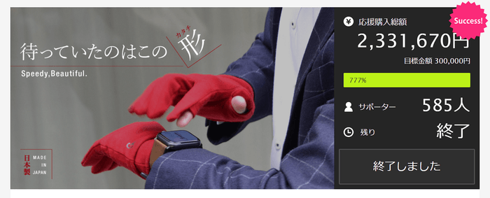 585名のサポーターに応援購入をいただき、目標達成率777%を記録しました。