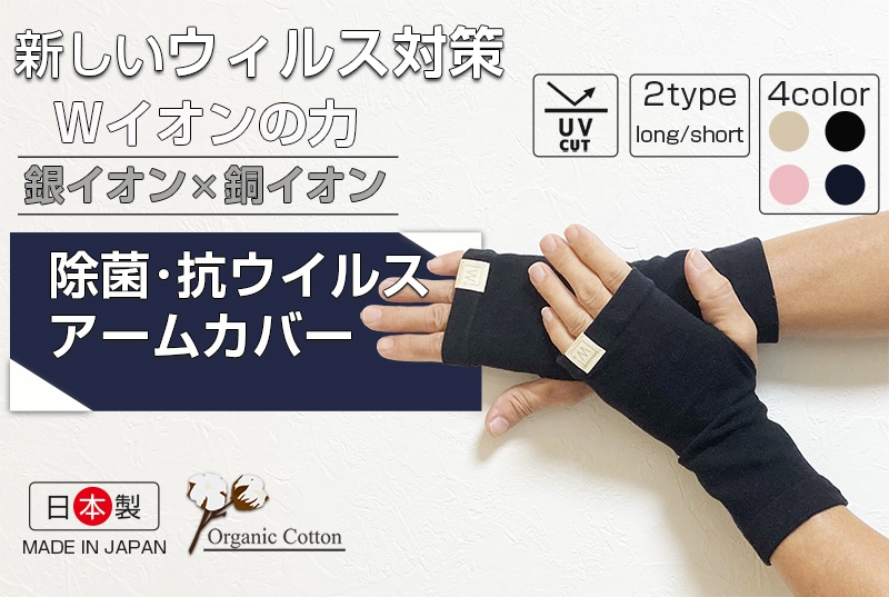 - 銀イオン×銅イオンを繊維に練り込んだ、ウイルス対策アームカバー!