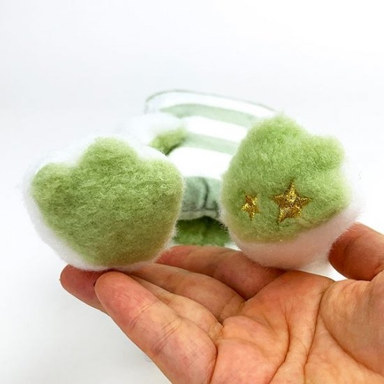 こちらにも同じ刺しゅうが入っています。グリーンカラーの場合は足の裏がホワイトなんです♪