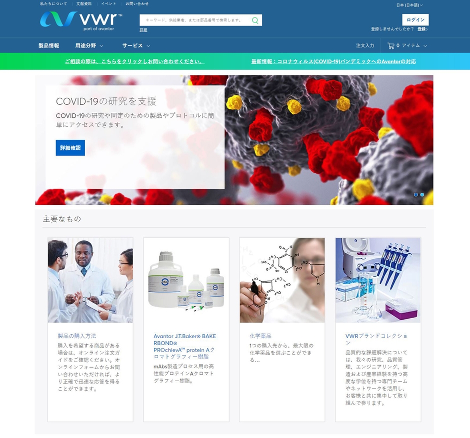 ライフサイエンス、先端技術および応用材料業界で必要不可欠な製品を提供するサービスを展開しているグローバル会社、Avantor(東京都中央区、代表:Sangkyu Lee)は、日本国内の顧客対応力強化のため、日本語のECサイト「jp.vwr.com」(以下、VWR(R))を開発し、2021年1月12日、日本でのサービスを開始します。