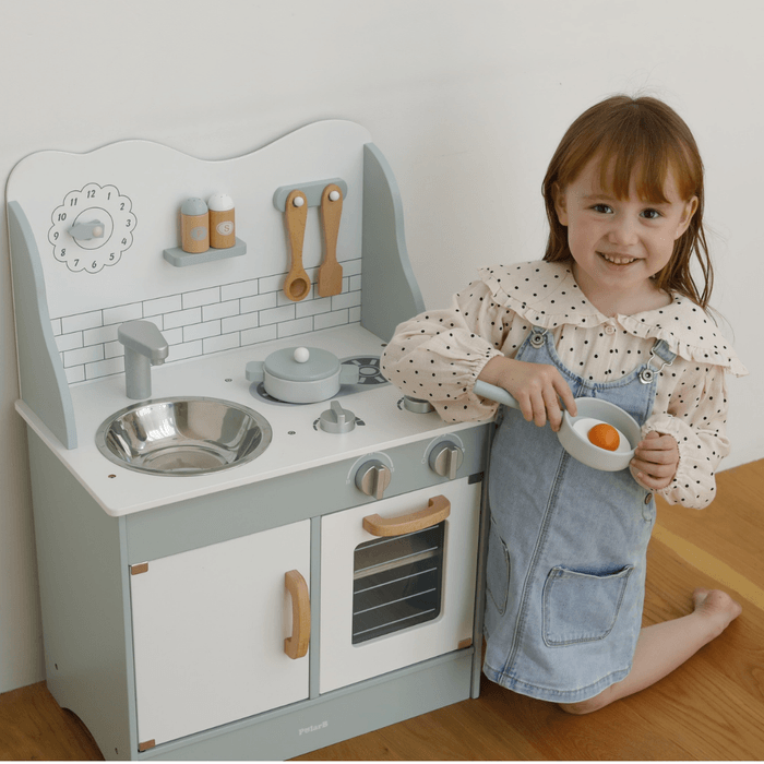 くすみグリーンカラーがおしゃれ♪ まるで本物のようなおもちゃのキッチン。
