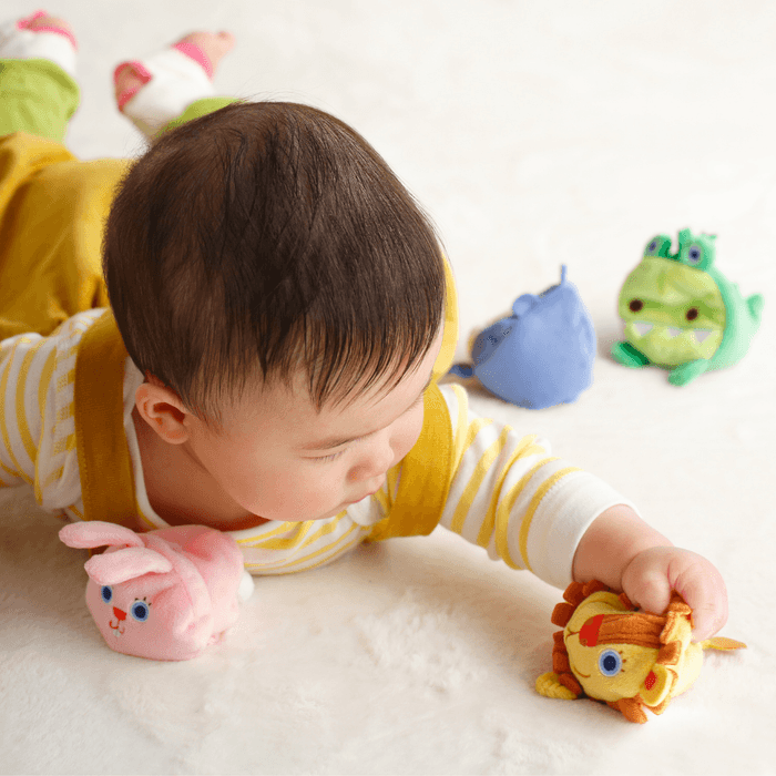 開発当時、クルマのおもちゃのほとんどが大きい子向けだったため、幼児も安心して遊べるクルマのおもちゃを作りたい、というメーカーの想いから誕生しました。クルマの動きが幼児の追視と空間認知のトレーニングに。引き戻すという動作で、幼児の総合的な運動能力を促すだけでなく、物事の原因と結果の理解にもつながります。布のパーツは取り外して水洗いできるのもうれしいポイント!