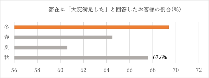 寒い冬は、アウトドアには不向きと思われがちですが、星空や森の静寂さなど、冬だからこそ感じられる魅力があります。また、十分な準備により冬の屋外でも快適に過ごすことが可能です。星のや富士では、冬グランピングとして、冬の魅力や新しい発見を伝えたいという思いから開発し、追求してきました。星のや富士が実施した顧客満足度データによると、冬の期間(2019年12月1日~2020年3月15日)に宿泊した人の約70%が「大変満足した」と回答。他の季節よりも満足度が高いことが分かりました。そこで、今年で3年目となる冬グランピングでは、これまで伝えきれていなかった冬の朝の時間帯の魅力に着目し、新たなアクティビティの開発に至りました。