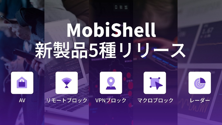 今回公開されたMobiShellシリーズは、特化したセキュリティ機能をサポートするターゲット製品4種と、製品統合管理が可能なモニタリングソリューションで構成されています。△モバイルアンチウィルスソリューション AV △遠隔制御検知ソリューション リモートブロック △VPN 検知ソリューション VPNブロック △マクロ検知ソリューション マクロブロック △アプリの脅威モニタリングソリューション レーダーであります。顧客は製品を適用することで、様々なセキュリティニーズを満たすことができ、必要なソリューションを選んで導入することができます。