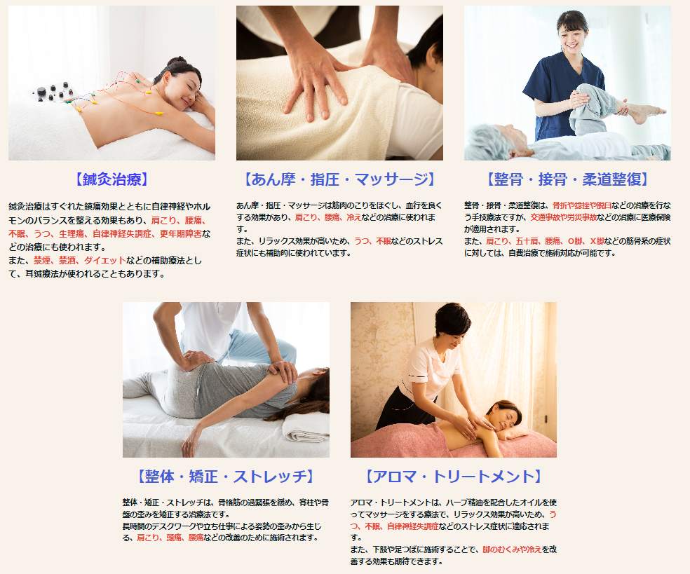 健康経営企業のプレゼンティーズムに対応する東洋医療&手技療法の治療院を検索。