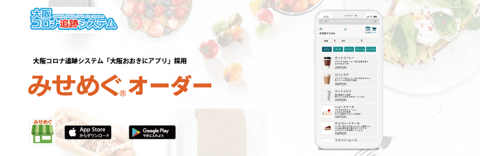 「みせめぐオーダー」は、大阪コロナ追跡システムの普及拡大と併せて進めているキャッシュレス化推進のための「大阪おおきにアプリ」として採用されました。これにより、大阪府内の店舗様にむけ、withコロナでのモバイルオーダー、テイクアウトオーダーの導入による多角化等、経営課題の解決を支援してまいります。また、本アプリ導入店舗をご利用いただく個人のお客様が便利に安心してお使いいただけるキャッシュレス決済をご提供します。大阪コロナ追跡システムの登録完了メールから、みせめぐオーダーの連携ができ、さらに店頭では、利用者が自身のスマホのみで注文や決済が行え、自宅ではテイクアウトの注文や決済が利用者のスマホで行えるようになります。