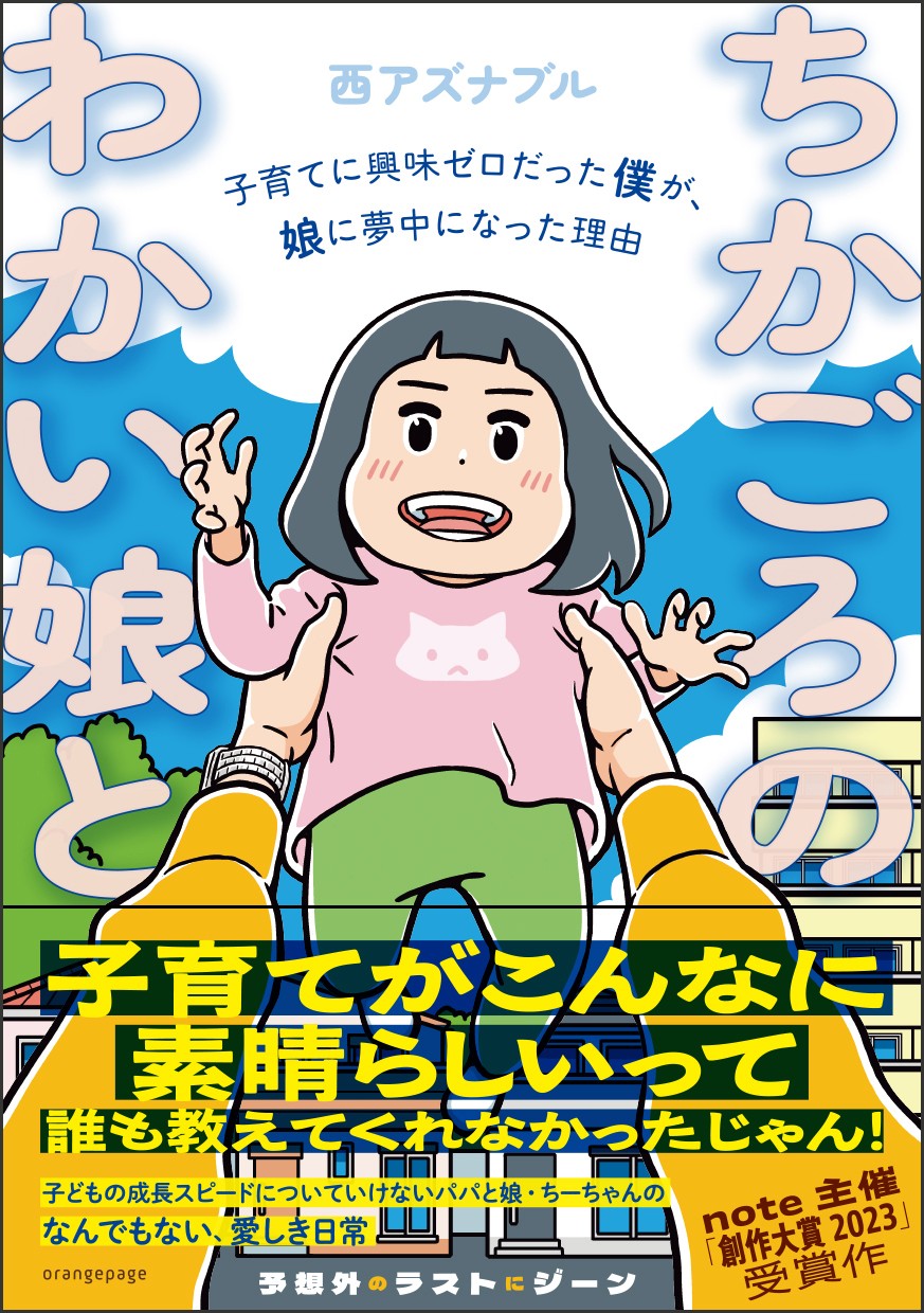 株式会社オレンジページ(東京都港区)は、小社として初めてnote主催「創作大賞」(※)を授与した、実録系マンガ家・西アズナブルによるコミックエッセイ『ちかごろのわかい娘と 子育てに興味ゼロだった僕が、娘に夢中になった理由』を2月20日(金)に刊行しました。「もともと子育てには興味がなかった」著者が、初育児で我が子のかわいさに圧倒され365日連続でイラストを投稿、その勢いで本作をスタート。育児あるあるからお出かけスポット体験まで、リアルな日常を綴った作品です。