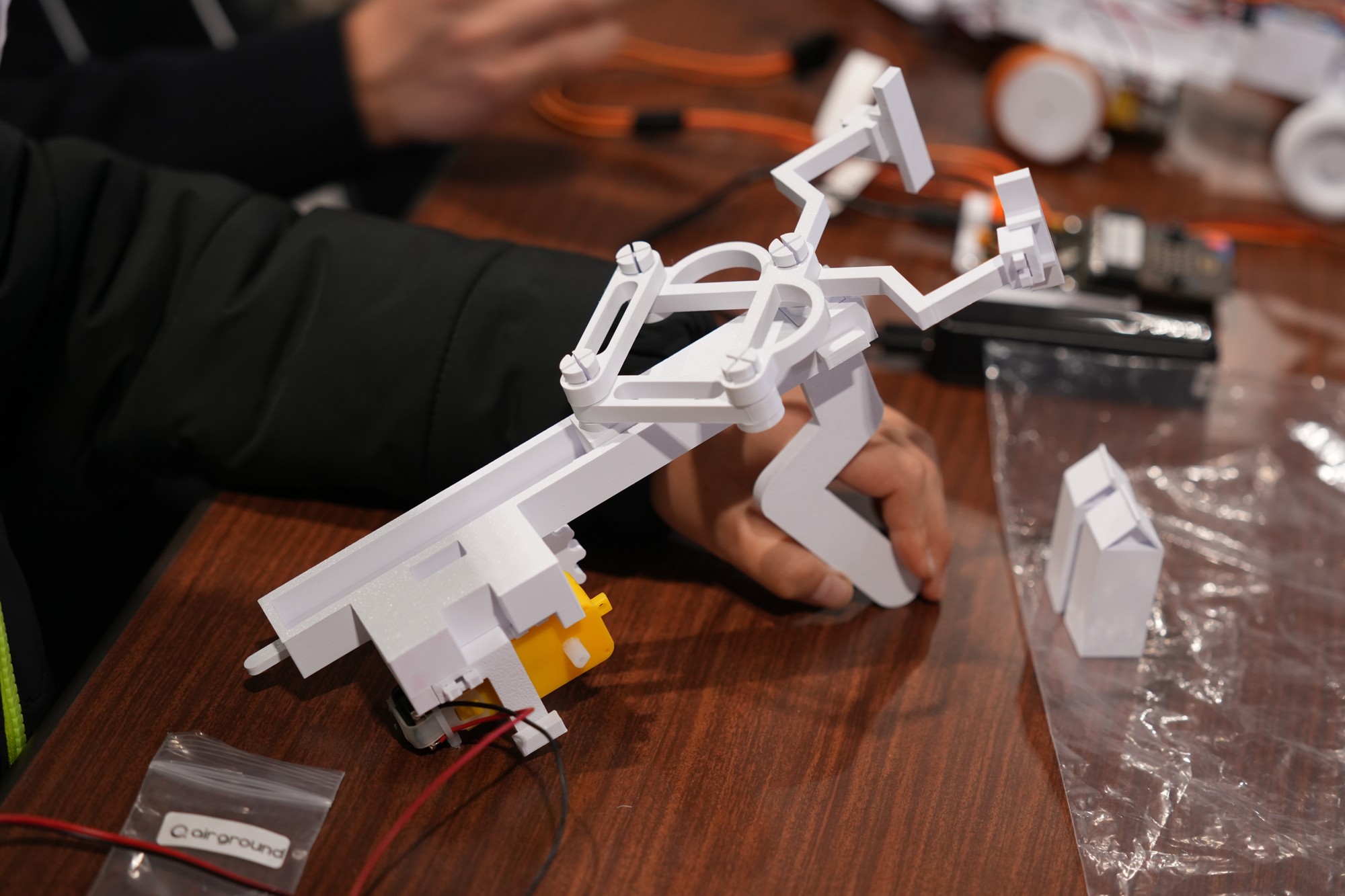 これまでに尼崎市立尼崎双星高等学校や神戸市立科学技術高等学校と連携し、小学校での授業や体験会を実施してきました。モーター搭載のロボットハンドなど、子どもたちが実際に組み立て、操作できる教材を使用しています。