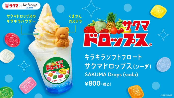「キラキラソフトフロート サクマドロップス(ソーダ)」は、ブルーハワイ味のソーダと、その上に濃厚なソフトクリーム&「サクマロドップスのキャンディグリッター」が乗った、この夏にぴったりな爽やかなソフトフロートです。「サクマロドップスのキャンディグリッター」は7つのフルーツがミックスされており、ソフトクリームとの相性も抜群。ドリンクを混ぜると甘くてなめらかな味わいに変わり、色もクリアブルーからパステルブルーに変化する為、味わいと見た目両方の変化が楽しめます。