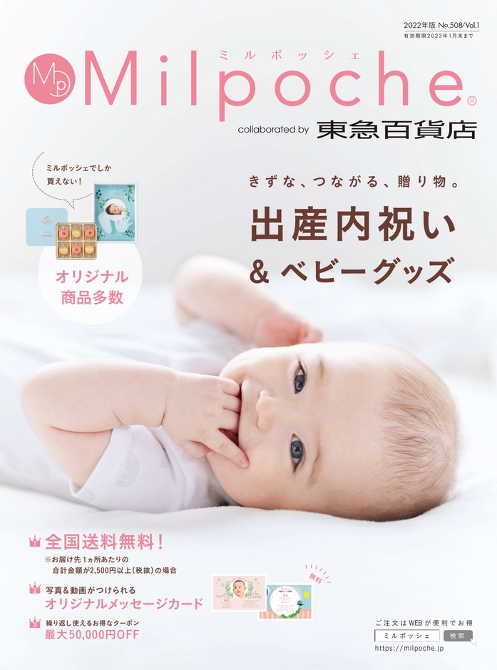出産内祝いギフト&ベビーグッズの通信販売と妊産婦さんへの情報サービス提供を行う株式会社メリックス(本社:大阪市北区、代表取締役:岩永 弘志)は、株式会社東急百貨店とコラボレーションした出産内祝いカタログ『ミルポッシェ』の2022年版を発行いたしました。