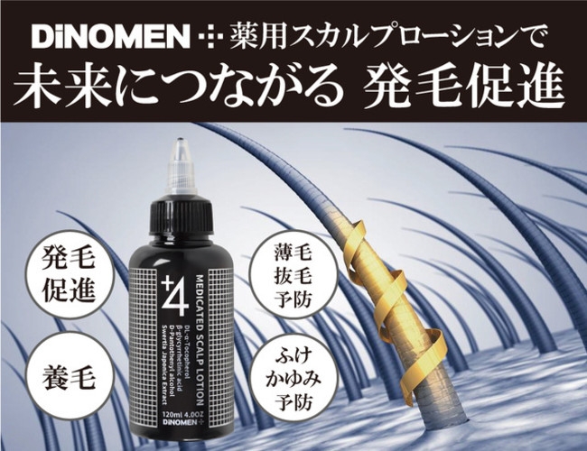 以前より男性化粧品ブランドDiNOMENのヘアケア製品をお使いのお客様から育毛剤を求めるお声を多くいただいておりました。この度数年の開発期間を経て自信を持ってオススメしたい育毛剤を開発しました!薄毛・抜毛・ふけ・かゆ予防をし発毛促進サポートする薬用育毛剤です。