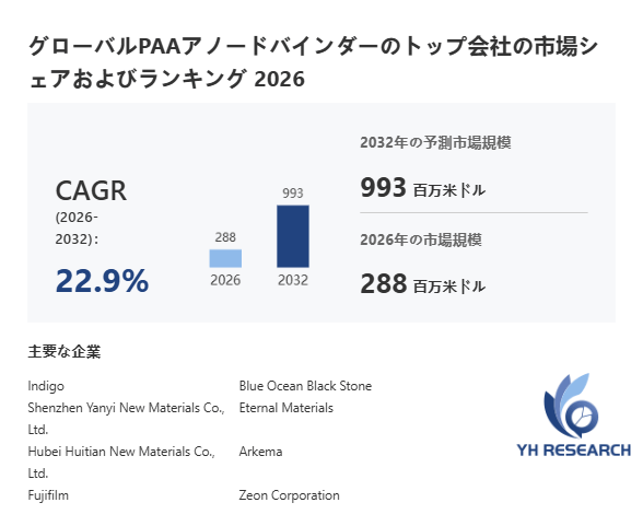上記の図表/データは、YHResearchの最新レポート「グローバルPAAアノードバインダーのトップ会社の市場シェアおよびランキング 2026」から引用されています。