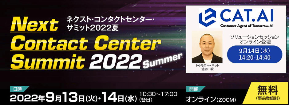 『ネクスト・コンタクトセンター・サミット2022夏』にて トゥモロー・ネットが講演 ~ユーザーにサクセス体験を 提供するAIコールセンターソリューションについて~