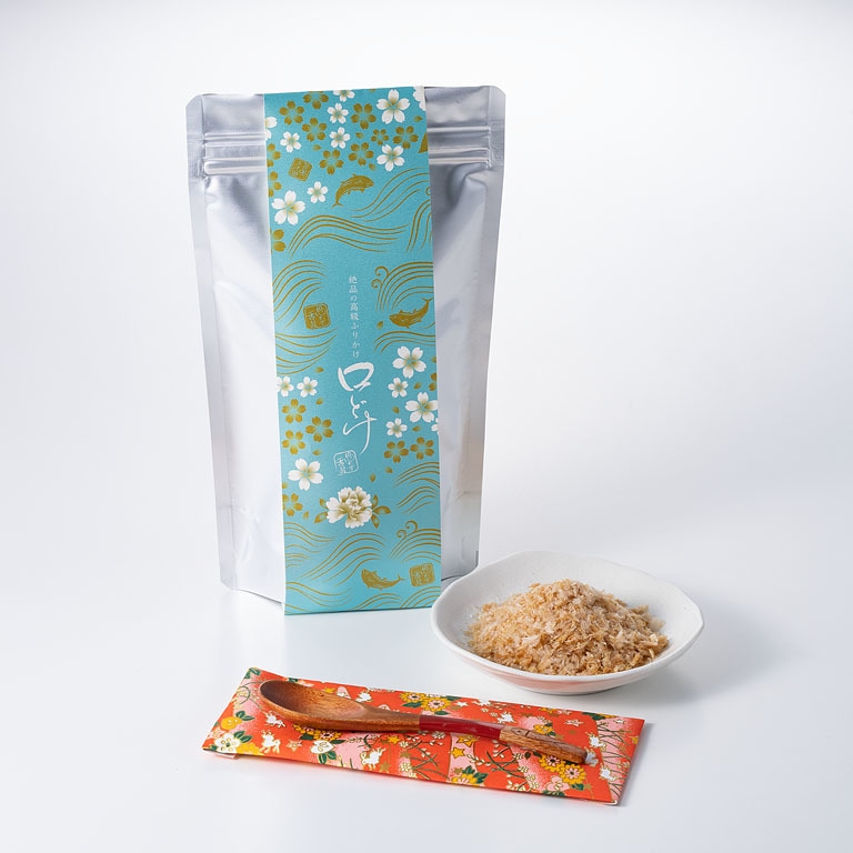 貴重な本枯節の血合部分を除いた澄み切った繊細な旨味をひきたてるような絶妙な技をほどこして仕上げた幻のふりかけ「口どけ」。