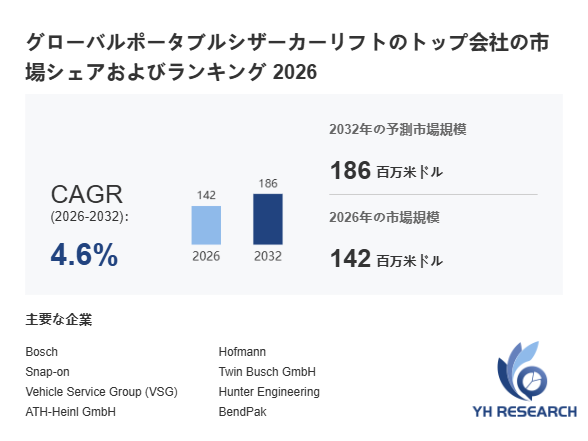 本記事は、YH Researchが発行したレポート「グローバルポータブルシザーカーリフトのトップ会社の市場シェアおよびランキング 2026」 を紹介しています。