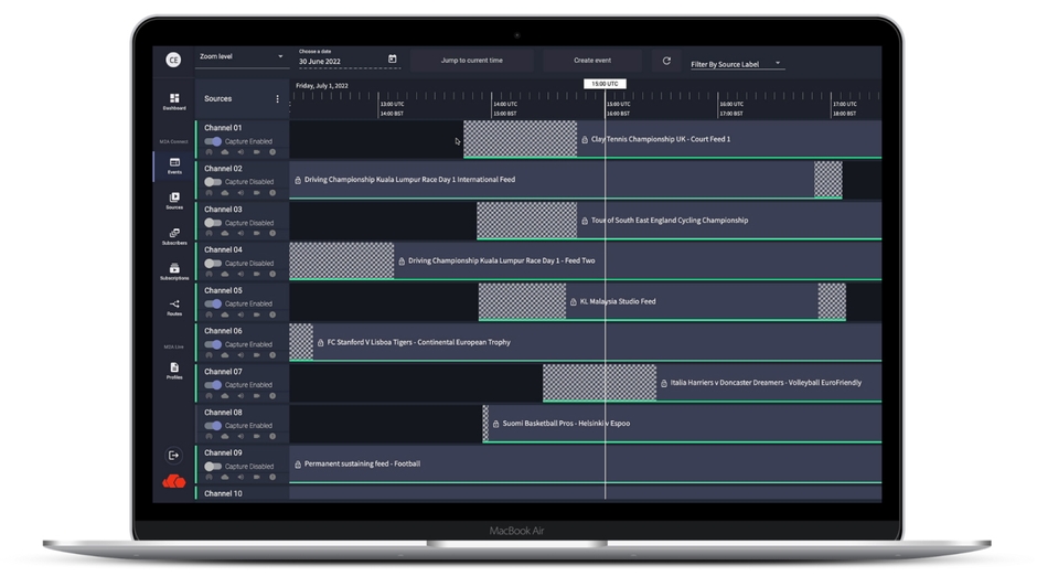 M2A Mediaのソリューション導入により、クライアントにとって重要な映像処理ワークフローが強化、自動化されます。具体的にはスムーズな映像放映のための放送局へのSRT配信、コンテンツ再利用のためのクリッピングパートナーへの映像ファイル生成とハンドオフ、動的なチャンネルアクティベーションを含む自動YouTube配信、RTP変換とデータサービスとの統合、競技関係者への試合映像のMP4変換・共有(試合終了後からの自動化で変換処理と配布にかかる時間を短縮)、トランスポートストリームアーカイブといった配信映像の処理です。