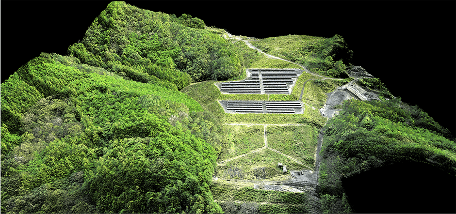 「UL-X1」は、森林地帯を例に挙げると、植生表面で反射したレーザのリターン信号に加え、植生の隙間から地表面に到達したレーザのリターン信号も受信できるため、植生のデータを取り除くことで、地表面のデータが得られます。