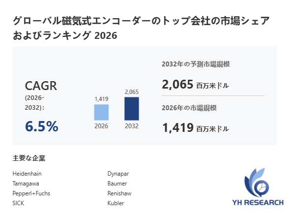 YHResearch調査チームの最新レポート「グローバル磁気式エンコーダーのトップ会社の市場シェアおよびランキング 2026」によると、2026年の1419百万米ドルから2032年には2065百万米ドルに成長し、2026年から2032年の間にCAGRは6.5%になると予測されています。