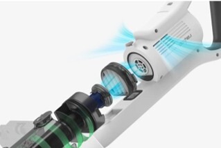 0.3umの超微細なホコリも99.9%集塵するHEPAフィルターなど4重フィルター構造でゴミをキャッチ。吸引力を維持しながら排気もクリーンに。