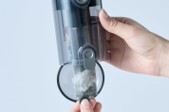 使い捨てフィルターで、手を汚さずゴミ捨てが可能。水洗いできるダストボックスで清潔さをキープ。