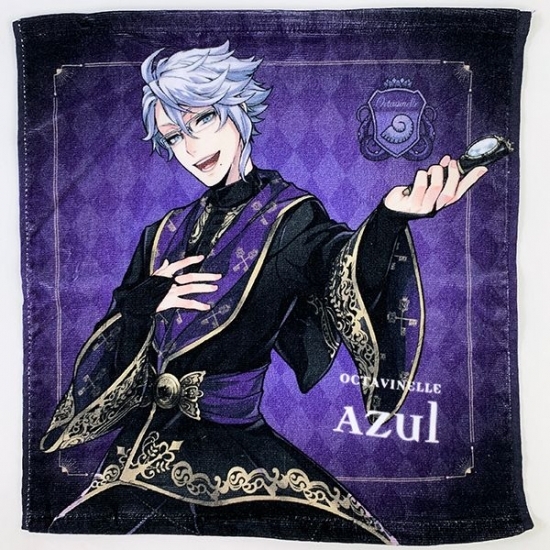アズールは、オクタヴィネル寮の寮長ですよ。彼の元ネタは『リトルマーメイド』のアースラと言われています。タオルのサイズは、35×34㎝です。