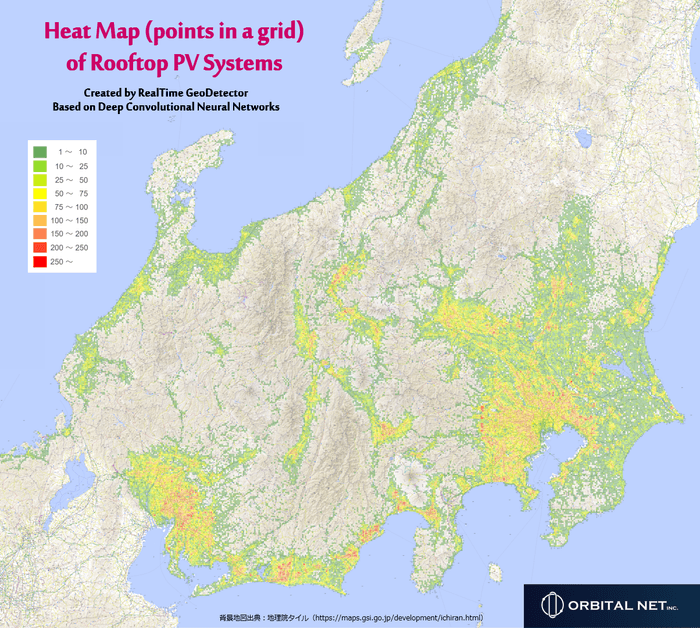太陽光発電設備を航空写真からAI判読してデータベース化し 「屋根上太陽光発電設備ヒートマップ・サービス」及び 「屋根上太陽光発電設備カーネル密度推定マップ・サービス」をWeb公開