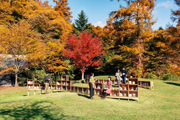自然と文化を愛する人々が集う場所「軽井沢星野エリア(以降、星野エリア)」では、2022年10月1日〜11月6日に、読書の秋、紅葉と本とカフェ時間を楽しむイベント「紅葉図書館」を開催します。広場のゆるやかな起伏に沿うように設計した棚の中に500冊の本を並べ、秋晴れの下、気持ちよく過ごせるイベントです。今年は新たに、樹木と寄り添う読書スペースを設えます。また、本と一緒に楽しめる期間限定のドリンクやスイーツもおすすめです。自然のなかの美しい空間で、秋の澄んだ空気を存分に感じながら、心豊かな時間を過ごすことができます。