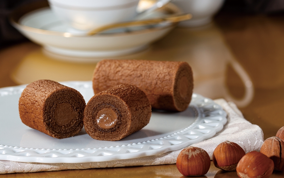 手のひらサイズのチョコバームクーヘンにヘーゼルナッツの芳醇な香りとミルクチョコレートの濃厚ねっとりな贅沢クリームを詰めました。