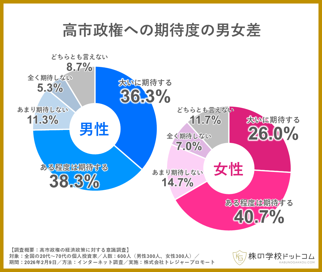 2月8日に行われた衆議院議員選挙で、高市早苗首相が率いる自由民主党が歴史的圧勝を収めました。この結果を受け、オンライン株式スクール「株の学校ドットコム」(運営会社:株式会社トレジャープロモート、東京都千代田区、代表取締役社長:瀬川 丈)では、全国の個人投資家600人を対象に、今後の高市政権への期待度について意識調査を実施しました。