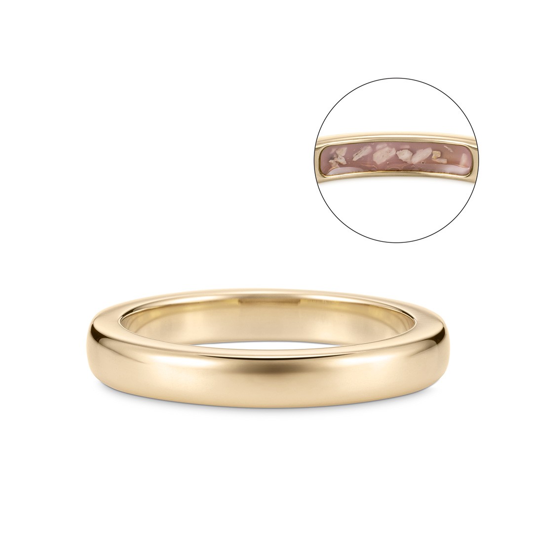 『オーバル』と『ラウンド』は納めたものをリング正面に配置し、視覚的にも大切な存在を感じられるデザインです。樹脂カラーは自由に選ぶことができ、「ペットの瞳の色」「好きだったおもちゃの色」「いつも身につけていた首輪の色」など、想い出を色として残すことができます。いずれも名前や没年月日などの刻印にも対応します。