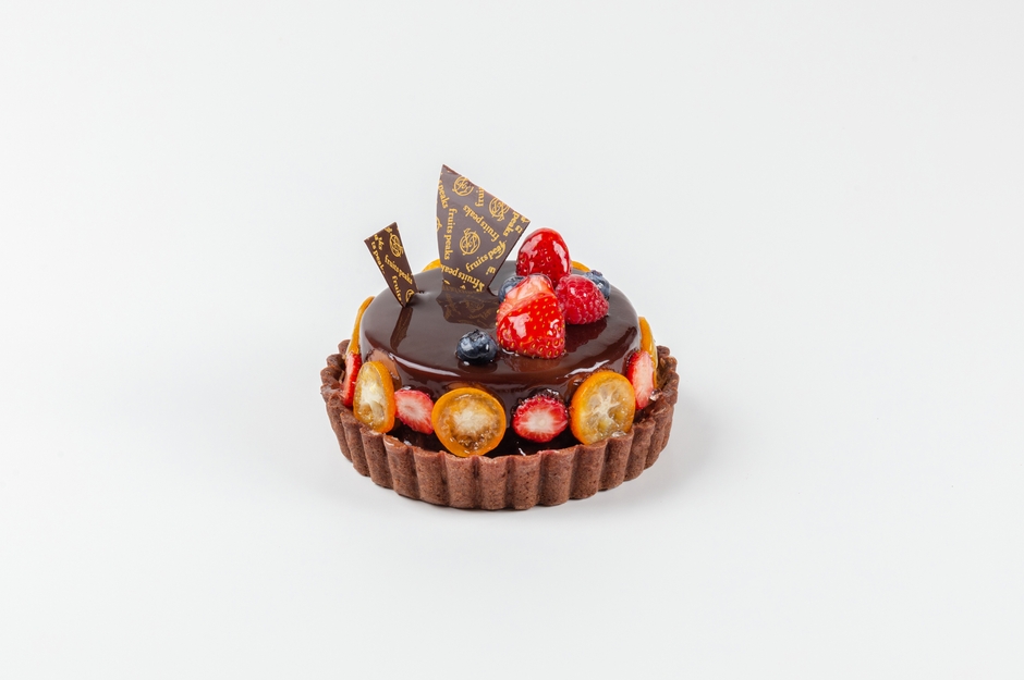 この時期にしか販売されない『ミロワールショコラ』は、鏡のような表面が煌びやかな、チョコムースとチョコスポンジが層になった楽しい食感のタルトです。タルト生地にもココアが練りこまれ、チョコ好きにはたまらない一品。金柑の爽やかな香りといちごの組み合わせが絶妙なタルトになっています。13cmの大きさは贈り物にも、ご自宅用にもピッタリ。果物のことを知り尽くしたフルーツ専門店が考案した、バレンタインを彩る絶品チョコレートタルトです。