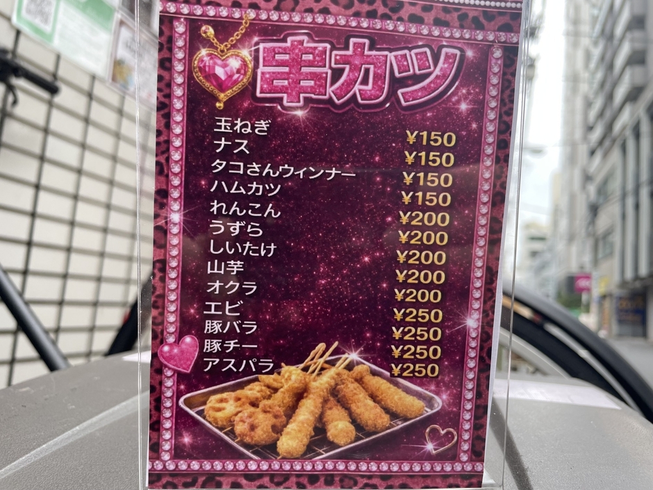 メニューはオリジナルレシピの串カツと自家製ブレンドソースを中心に構成しつつ、週替わりでテーマ料理(宮崎料理や韓国料理など)を取り入れています。