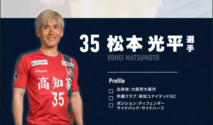 所属クラブ:高知ユナイテッドSC(背番号35)