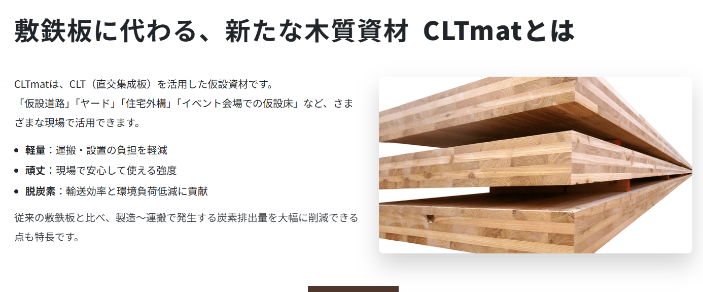 敷鉄板に代わる、新たな木質資材「CLTmat」 全国へ本格的に販売・リース開始 軽量・頑丈・脱炭素・NETIS登録・経済性