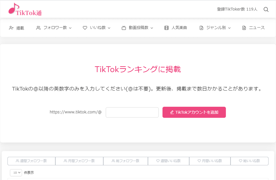 「TikTok通」では各項目をランキング順で表示/掲載しております。ランキングには推薦、他薦誰でも登録は可能でございますが、認証後に掲載されます。